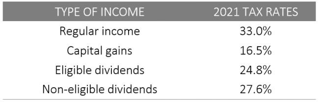 The table below shows the highest marginal federal tax rates for various types of income in 2021.